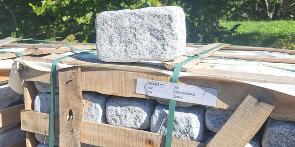 Granite cobblestone sizes vary slightly from stone to stone. They are tumbled to ease the edges and are perfect for cobblestone edging, driveway aprons, driveways and granite cobblestone pavers.
